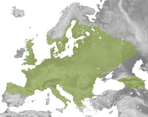 Banaketa eurosiberiarra duen narrastia da, naiz eta sekundarioki ingurune mediterraneoan ere agertu ohi den. Hedapen zabala du, ia Europa osoan eta Asia mendebaldean aurkitzen baita. Iparraldean 63º-ko paraleloraino hedatzen da eta hegoaldeko muga Italia, Turkia eta Grezian du (Terhivuo, 1981).