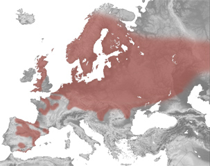 Espezie migratzailea denez uda Europan eta negua Afrikan egiten du. Europan Iberiar Penintsulan eta, batez ere, Europa erdialdean aurki daiteke (Uraletaraino eta Siberia mendebaldean ere ikusi izan da). Iberiar penintsulako banaketa zatikatua dago, mendi inguruak hobesten baititu. Euskal Herrian ere halatsu gertatzen da. (Cramp eta Perrins, 1993; Morales, 2012).