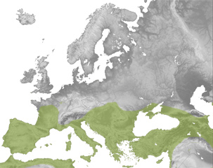 Banaketa oso zabala duen espeziea da. Jatorri subtropikala duen arren, Europan, Afrikan, Asian eta Australian ere aurki daiteke. Asiako eta Australiako animaliak espezie berekoak diren, ordea, eztabaidan dago. Europari dagokionez, hegoalde guztian arrunta da, Iberiar penintsulatik Kaukasoraino. Iberiar penintsula osoan aurki daiteke, hegoaldean eta mediterraneo inguruan arruntagoa den arren, eta mediterraneoko irla gehienetan ere badago (Dietz et al. 2009).