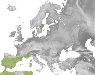 Europako ipar-mendebaldean eta Afrikako kostaldeko eremu mediterraneoko mendebaldean bizi da. Iberiar Penintsula ia osoan aurki daiteke baina, eskasagoa da iparraldean, eta Euskal Herriko iparraldean ere ez da horren erraza topatzea. Piriniotako ekialdetik Frantziako hegoaldera zabaltzen da eta Balear uharteetan ere topatu izan da. Afrikan, Magrebeko eskualdeetan da arrunta (Maroko, Algeria, Tunisia eta Libia).