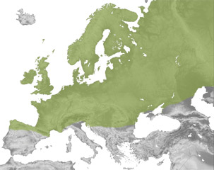 Banaketa naturala zirkunboreala du, baina XIX. mendearen amaieran Zelanda Berrian sartu zuten. Europa osoan aurki dezakegu baina Iberiar penitsulan banaketa zatikatua du. Penintsula mendebaldean Galizian, Portugal iparraldean, Asturiasen, Kantabrian, Gaztela Leon iparraldean eta Bizkaiko mendebal muturrean banatzen da; Gorbeia eta Urkiola mendigunetan ere ikusi da. Penintsula ekialdean Pirinioetan aurki daiteke, Huesca, Lleida eta Girona probintzien iparraldean. Nafarroan Larra-Belagua inguruan soilik ikusi da. Iparraldeko banaketari buruz ez daukagu informaziorik.