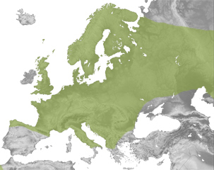 Ia Eurasia erdialde guztian hedaturiko espeziea da. Ozeano Atlantikoko kostaldetik Ozeano Bareko kostalderaino hedatzen da, eta iparraldeko muga Siberiako estepa izoztuek ezartzen diote. Hegoaldeko muga, berriz, Mediterraneo itsasoaren kostaldean dago. Iberiar Penintsulak isurialde kantauriarrean bakarrik bizi da, eta, ondorioz, baita Euskal Herrian ere.