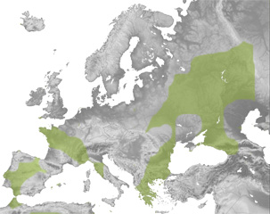 Europa erdialde eta hegoaldean eta Afrika iparraldeko hainbat puntutan aurki daitekeen espeziea da. Dena den, populazio esanguratsuenak Mediterraneo itsasoaren arroan ezagutzen dira dira: Grezia, Korsika, Italia, Eslobakia eta Espainan. Marokon, Libian, Turkian, Iranen eta Errusian ere ale batzuk aurkitu izan dira.