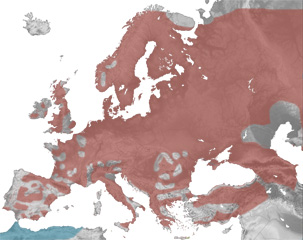 Euskal Herrian ere udako banaketa du, eta toki oso zehatzetan aurkitzen da: Izki, Urbasa eta Andiako basoetan ugaltzen da, eta baita Urrobi eta Irati ibaien goi-inguruetan.