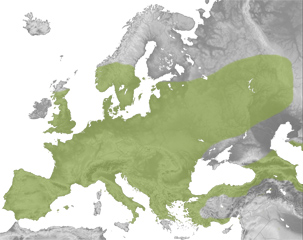 Europara mugaturiko banaketa daukan espezia da. Kontinente guztian aurki daiteke, Eskandinavia erdialdetik iparraldera salbu. Mediterraneoko uharteetan falta da, eta baita Irlandan ere. Ekialdeko muga Kaukasok eta Errusiako taigak ezartzen dute. Euskal Herriko lurralde ia guztian aurki daitekeen espeziea da, baso inguruneetara mugatua, ordea.