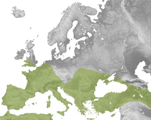 Iberiar penintsula ia guztian aurkitu da, nahiz eta Aragoi eta Gaztela Mantxan zita gutxi ezagutzen diren. Euskal Herrian, berriz, espezie ugaria da eta gordeleku asko ezagutzen dira Euskal Autonomia Erkidegoan eta Nafarroa iparraldean, batik bat (Aihartza 2001).