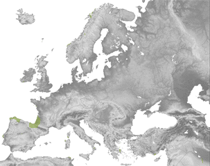 Bizkaiko Golkoko zonalde atlantiar-pirenaikoko endemismoa da eta Frantziako Landetatik Galiziaraino zabaltzen da, baina gaur egun, Kantabriatik, Bizkaiatik, Asturiasetik eta Lugoko kostaldeetatik erabat desagertu dela uste da. Euskal Herrian Lapurdi zein Gipuzkoako kostaldeko zenbait dunatan hazten da.