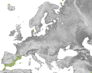 Landare mediterriarra dugu, Iberiar Penintsulan, Afrika iparraldean eta Frantzia hegoaldean zehar aurki daitekeena. Eskualde Eurosiberiarrean soilik Kantabrian (Castro Urdialesen eta Ontónen) (Aedo et al., 2001) eta Bizkaiako mendebaldean deskribatu da. Bizkaian bi populazio baino ez daudela uste da, Luzuero Muturrean (Zierbenan), hain zuzen ere (Aseguinolaza et al., 1984; eta Patino et al., prentsan).