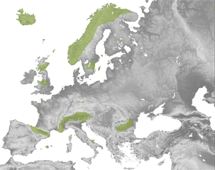 Banaketa boreo-alpetarra duen landarea da. Europan, zehazki, mendi garaienetara mugatzen da. Euskal Herrian, Ordunteko mendietan soilik bizi da, 1.050 bat metrotan. Altuera hori espezie honentzat oso txikia da. Bizkaiko gune urri eta txikietatik hurbil, mendebaldean, Kantabrian eta Burgosen, zenbait populazio daude; baina ekialdean, populazio hurbilenak 150 kilometrotik gorako distantzian daude, Pirinioetan.