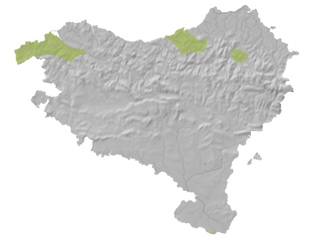 Euskal Herrian Bizkaian lau populazi daude, bat Gipuzkoan eta Nafarroako pirinioetan beste batzuk. Bizkaian Berango, Artzentales eta Muskizen agertzen den bitartean, Gipuzkoan Aiako Harrietan dago, denetan ere altuera oso baxuetan. Aiako Harriko populazioa Natura2000 sarearen barruan kokatzen da eta Bidasoa eta Biarritz inguruan ia itsaso mailararte jaisten dela behatu da. Populazio hauetatik gertuen dauden beste populazioak Sorian eta Kantabrian agertzen dira.
