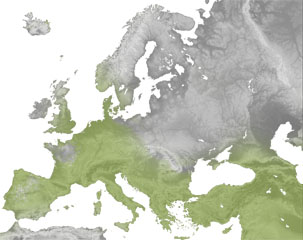 Banaketa submediterraneoa duen zuhaitza da. Europako erdialdean eta hegoaldean eta Asiako hego-mendebaldean hedatzen da. Iberiar penintsulan, Mediterraneoko eskualdean zabaltzen da.