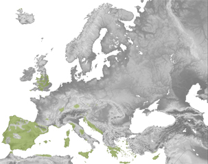 Europako hegoaldean du bere banaketa eremua, klima mediterranearrari lotuta. Euskal Herrian ere klima mediterranearran topatzen den eremuetan aurkitzen da, hots, Nafarroako eta Arabako hegoaldean.