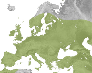 Mediterraneo inguruan hedatzen da, Europa iparralderaino (Norvegia eta Ukrainaraino) helduz. Marokon eta Asiako mendebaldean ere agertzen da. Iberiar penintsula ia osoan hedatua dago, baina hego mendebaldean falta da edo oso arraroa da. Euskal Herrian, ia lurralde osoan aurki daiteke (mendi garaienetan salbu), mediterraneo aldean ugariagoa izanik beti ere.